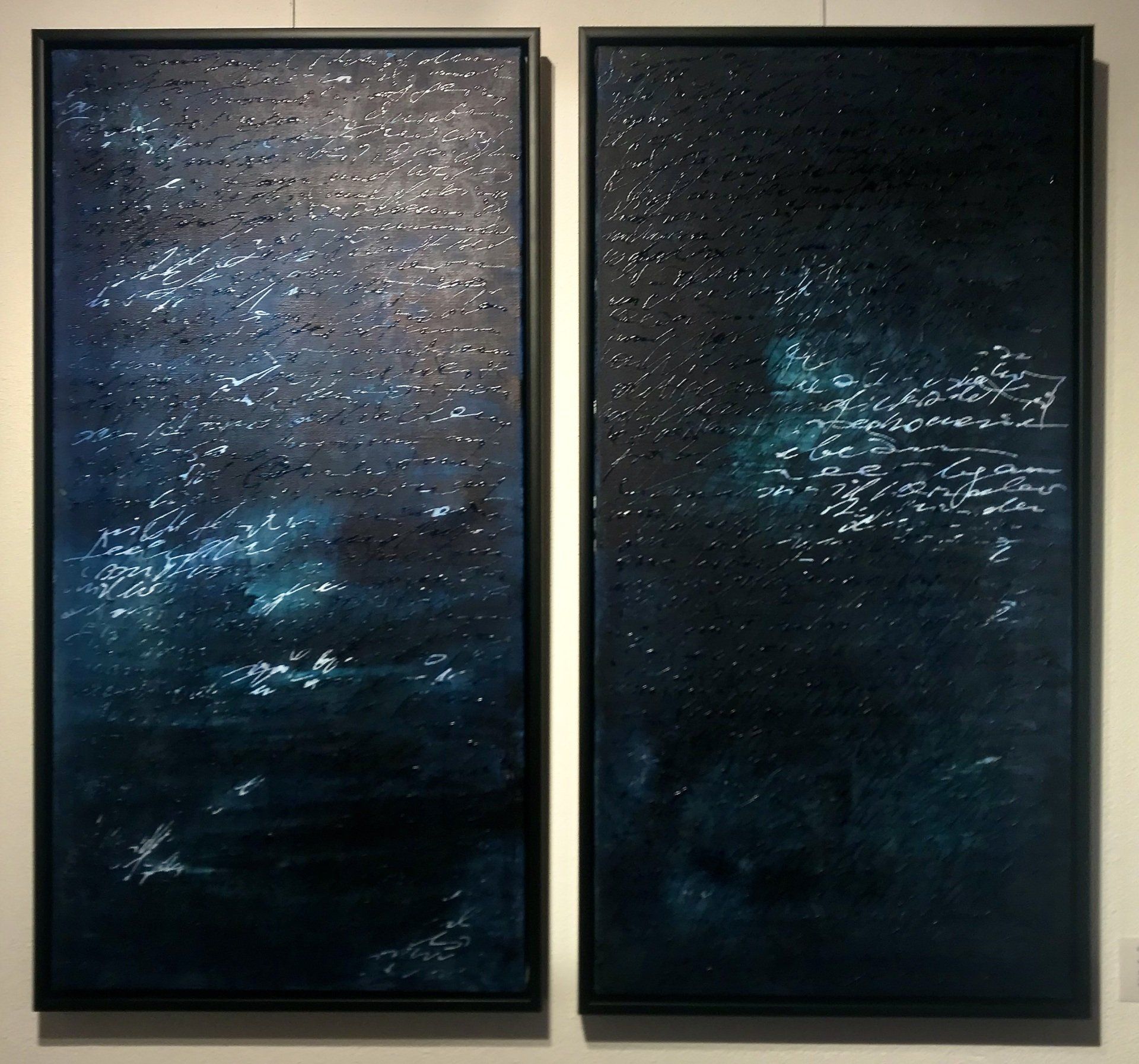 Für mich ist Kalligraffiti eine gelungene Ausdrucksform, die mein akademisch erlerntes Schönschreiben mischt mit meiner Arbeit als freie Künstlerin, die oft Schriftzüge und Zeichen als grafische Elemente beinhaltet. Immer wieder sind es Blautöne, inspiriert von den Wellen des Lebens und vielen Aufenthalten am und der ständigen Sehnsucht nach dem Meer.