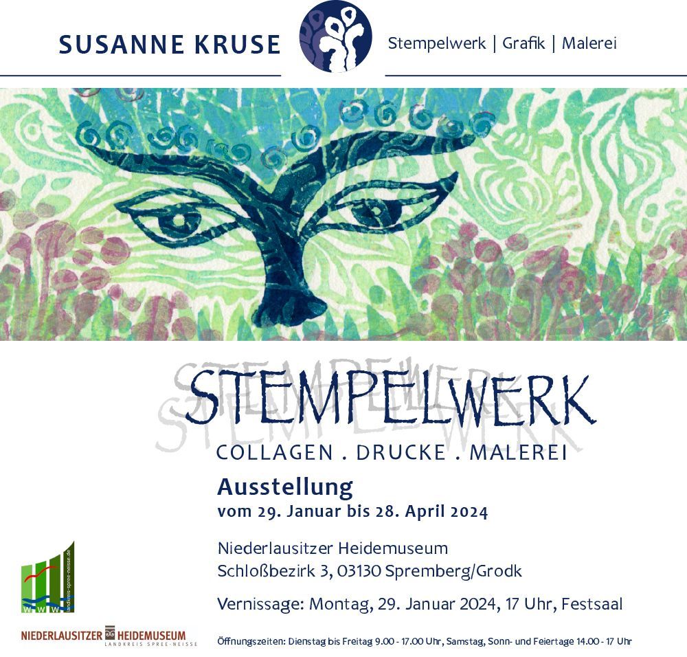 Nach einer Ausbildung zur Kunst- und Kreativitätstherapeutin ist sie in sozialen Projekten und Einrichtungen als Kursleiterin tätig. Die freie künstlerische Arbeit betreibt Susanne Kruse in ihrem Wohnatelier am Gemeinschaftshof in Reuden bei Calau (www.hoffreuden.de). Ihre Werke umfassen Malerei, Grafik und Druckgrafik. Besonders die Stempeltechnik und die Monotypie begeistern die Künstlerin in deren unerschöpflichen Möglichkeiten, dem spontanen Einsatz und den Überlagerungen von Elementen und Farben.